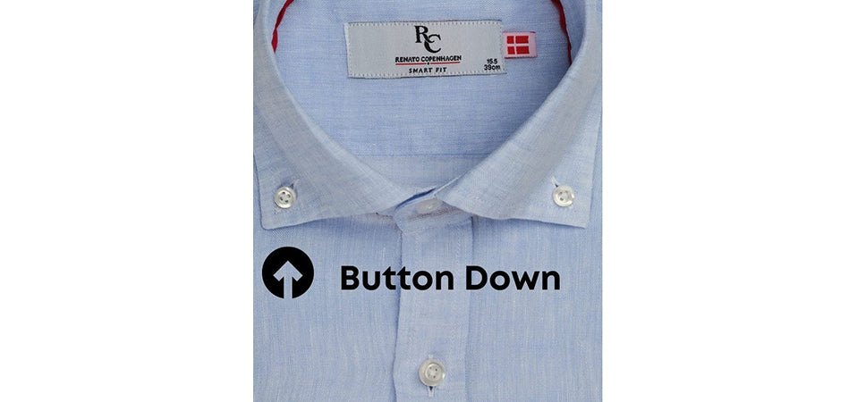 Button Down krave er en stil, hvor kraven har små knapper på spidserne. Stilen er inspireret fra de italienske modehuse, hvor kraven med sin mellem høje stil og bagudskæring ser både elegant og stilfuld ud, uanset om du vælger at bære den med eller uden blazer. Kraven forbliver stabil og bevare sin elegante form konstant.