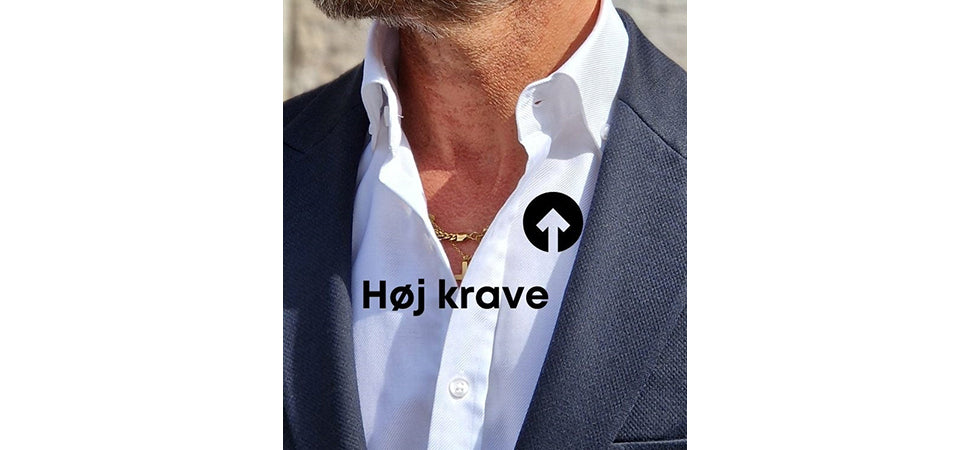 Den klassiske høje krave giver en stilfuld kravestil og er iøjnefaldende, uanset om man vælger at bære et slips eller vælger at være foruden –