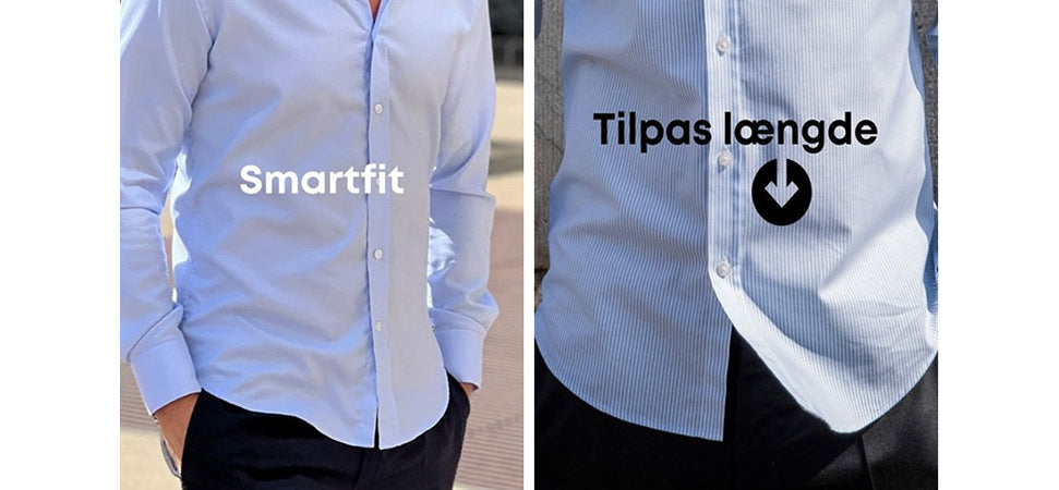 Vores Smartfit skæring er den mest unikke del i vores skjorter. Dette snit fremhæver brystkassen og de brede skuldre som er nogle af de afgørende elementer for en perfekt skjorte og ikke mindst, er komfortabel omkring taljen, hvilket i sin helhed giver et stilfuldt og elegant udseende. Sagt på en anden måde, du får et slimfit look, men samtidig har plads til hyggemiddage og bevægelighed.
